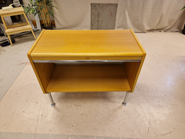 Jalusisåp utan nyckel med kromade ben. Finns repor och märken, är i bruksskick. Mått: D=42, B=83, H=67 cm.