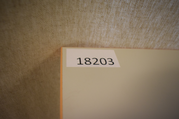Rullbord med ljusgrå skivor i trä. Finns repor och märken. D43 B60 H107