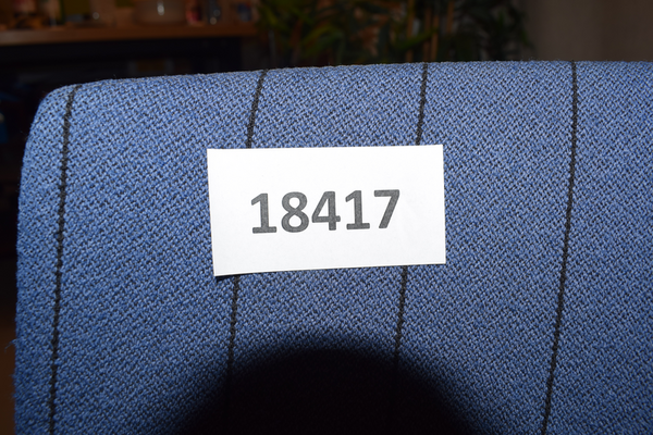 Stol i blått tyg och metallben. Höj- och sänkbar. D66 B48