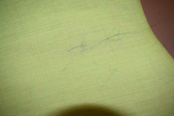 Trästol med tyg, fläckar finns. D50 B45 H80 H(Sitt)46