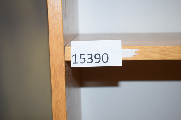 Trähylla med 4st plan. Finns repor och märken. D30 B80 H188