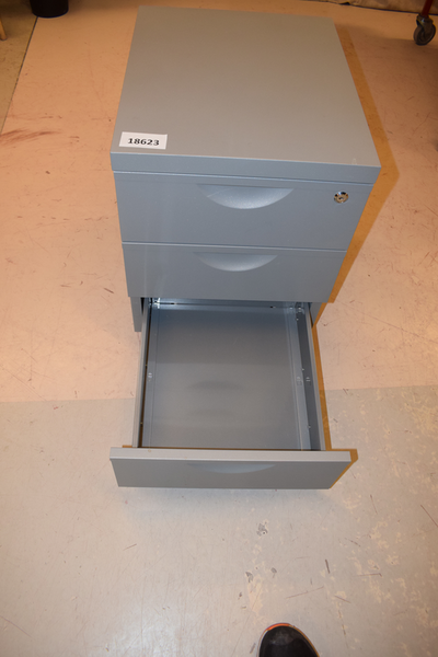 Metallhurts med hjul och med 3 lådor, nyckel saknas. D51 B47 H57