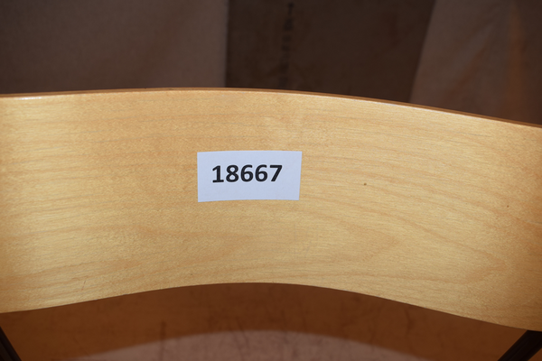 Campus stol i trä med svarta metallben. D45, B47, H76. D(Sitt)40, B(sitt)39, H(sitt)45