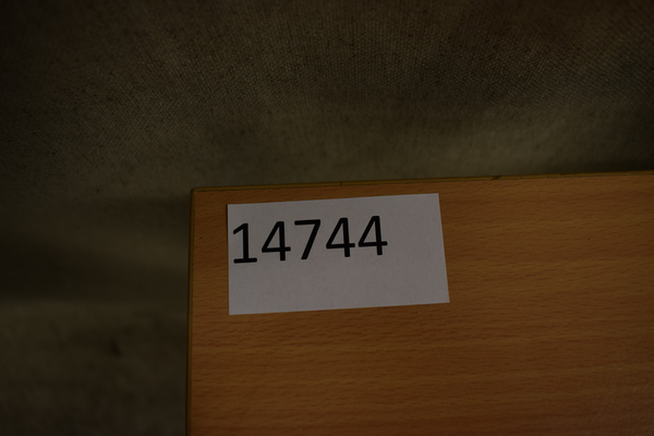 Beskrivning: Bord, ljuddämpande skiva, ben i trä. Finns repor och märken, är i bruksskick.