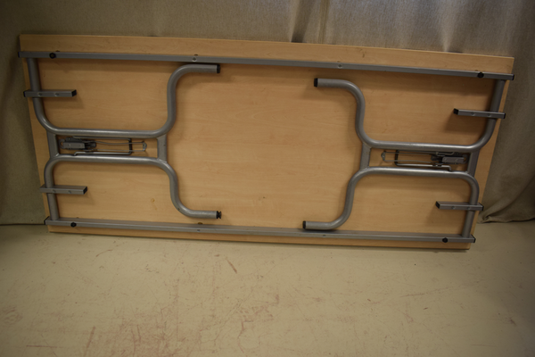 Brod med träskiva och infällbara metallben. D80, B180, H72,5