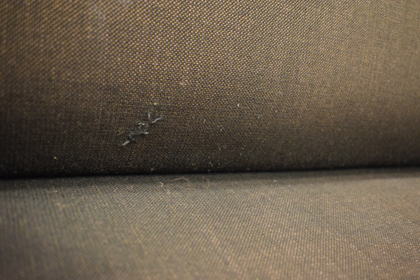 Svart soffa. Finns fläckar, märken och tufsar. D85, B170, H65