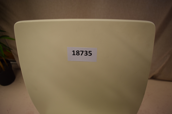 VIt trästol med metallben. Finns repor och märken. D51, B56, H91. D(sitt)43, B(sitt)41, H(sitt)47.