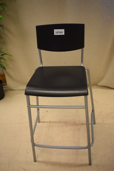 Hög plastsits och ryggstöd med metallben. B:53 D:63 H:90