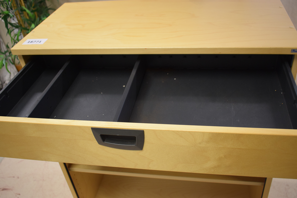 Låsbart jalusiskåp med 2 hyllplan och 1 låda.