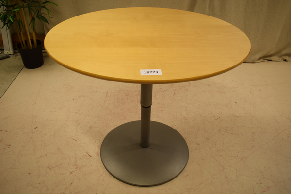 Ovalt bord i trä och metall. B:86 D:73 H:70