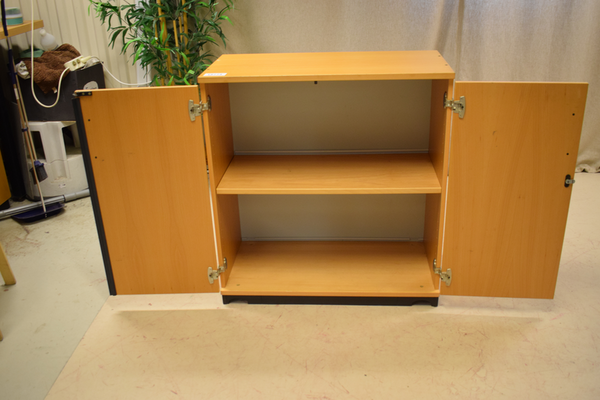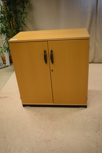 Träskåp med 2st hyllplan. Nyckel saknas. B:80 D:40 H:85