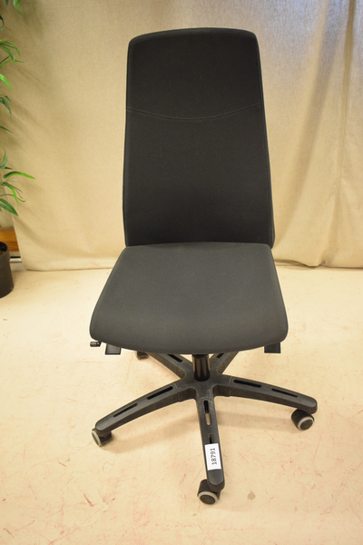 Svart kontorsstol. Höj- och sänkbart. Lutbart ryggstöd. B:67 D:43(sits)