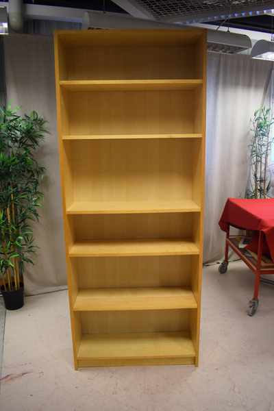 Bokhylla med 6 hyllor med små märken. B:80 D:28 H:203