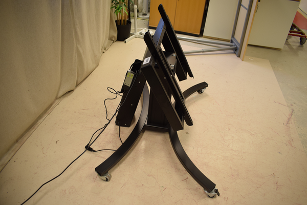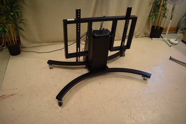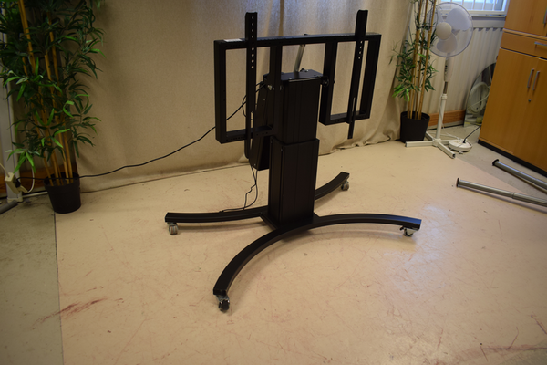 Svart displaymount i svart metall. Höj- och sänkbart med tiltfunktion. Styrd medkabelkopplat kontroll. B:125 D:78