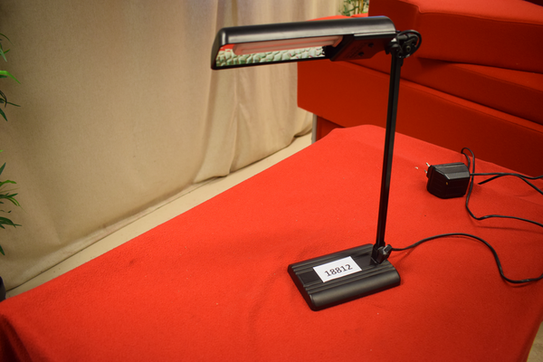 Svart skrivbordslampa i metall och plast. B:27 D:11 H:41
