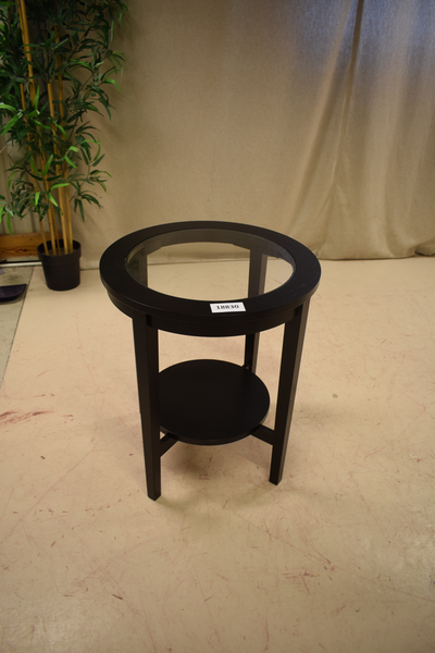 Rund bord med glasskiva med hyllplan under. Ø54 H:63