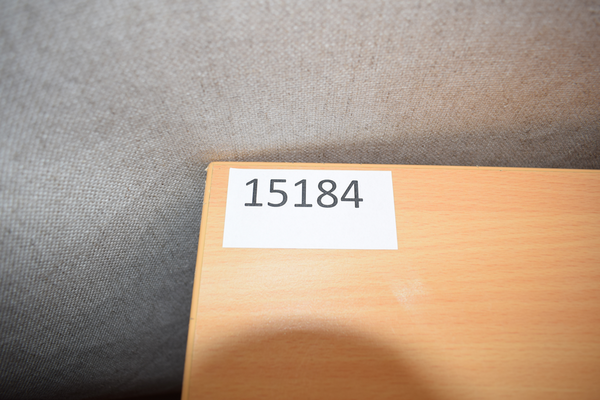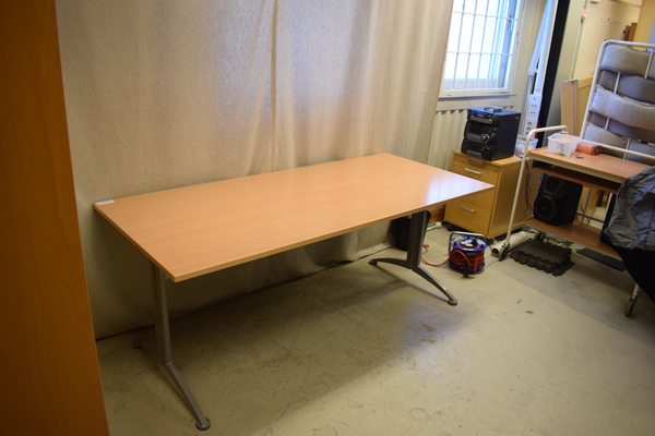 Bord med träskiva och metallben. Finns repor och märken. D80, B, 180, H73.