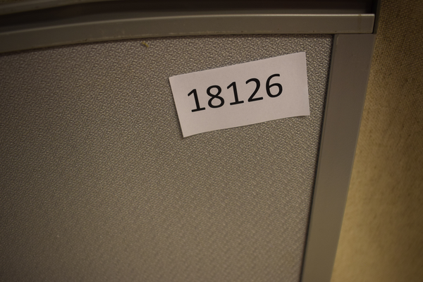 Grå bordsskärm. Finns repor och märken. B100, H55.