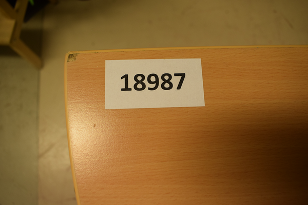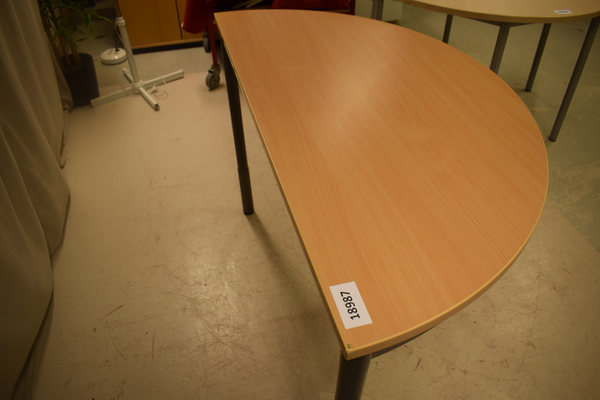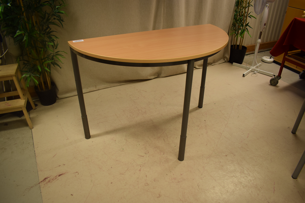 Halvbord med träskiva och med metallben. Finns repor och märken. D60, B120, H83.