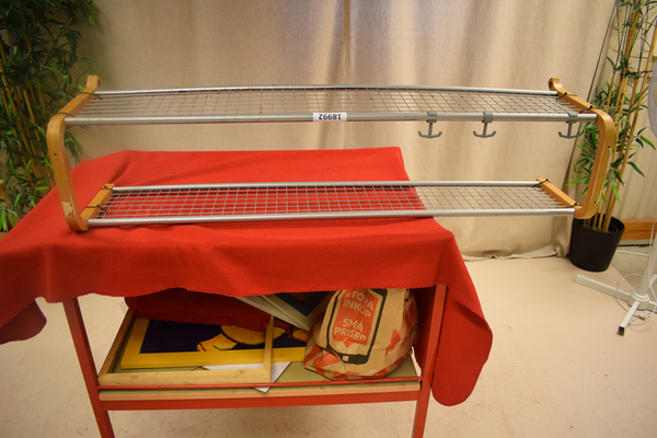 Hatthylla i galler, med trä-ram. D30.5, B120, H30,5.