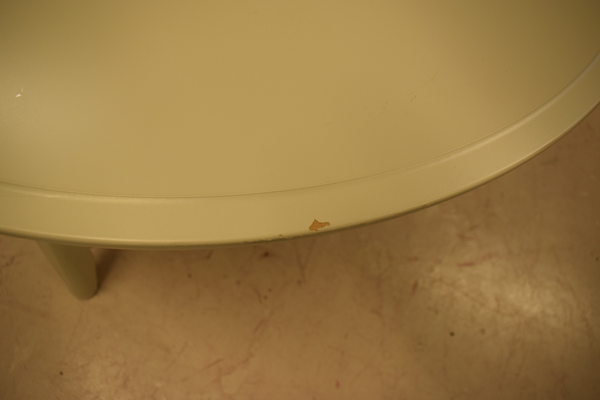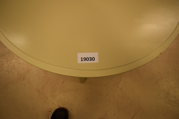 Runt soffbord i trä. Är i använt skick, finns repor och märken. Ø160, H48.