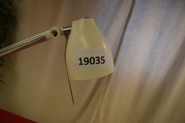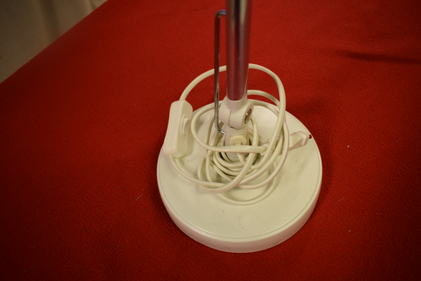 Vit lampa, med på och av knapp. Ø(huvudet) 9, Ø(foten)16, H75,