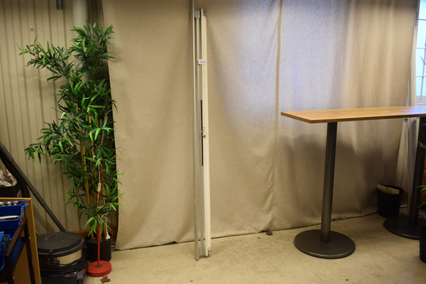 Vit projektorduk. Finns repor och märken, är i bruksskick. Mått: B=206 cm