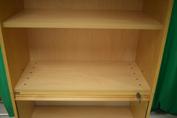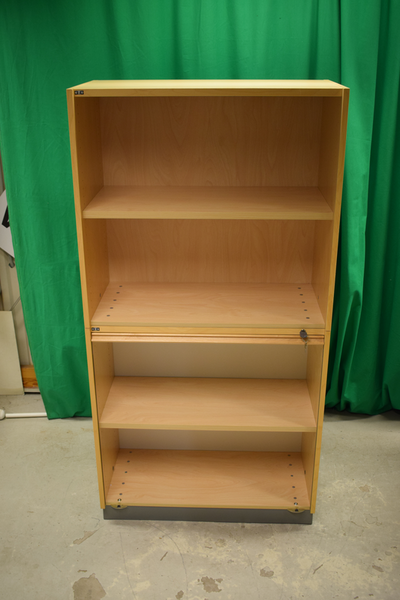 Trähylla med jalusi. Jalusin går ej att låsa. H:158 B:80 D:40