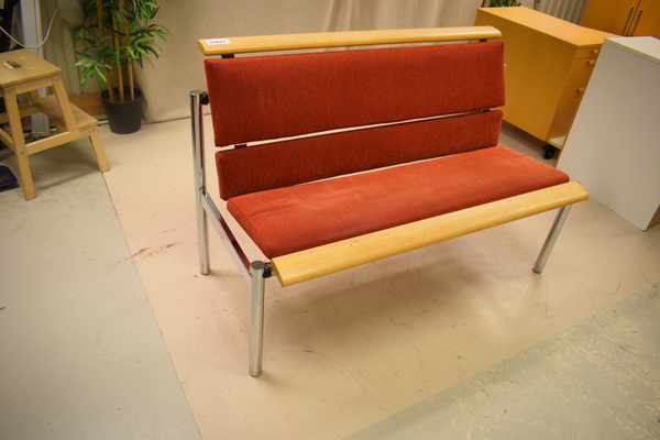 Bänk med tygsits och metallben. H:82 B:126 D:69