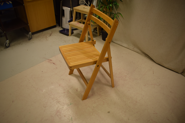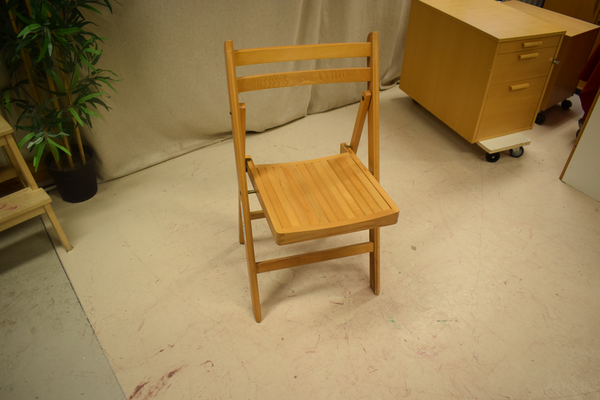Vikbara/ihopfällbara stolar i trä med ribbad sits. H:85 B:46 D:47