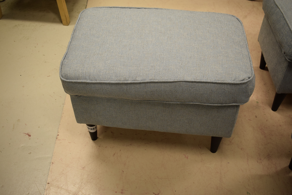 Pall i tyg. Grå-blå, omklädd , nyskick D: 41, B: 60, H: 41.