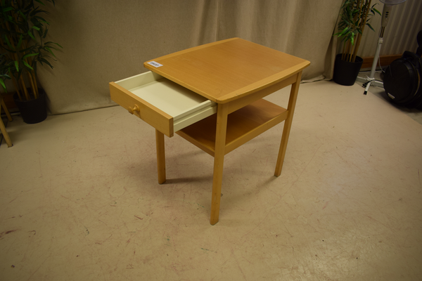 Bord ti trä med låda och underhylla. H:68 B:51 D:63