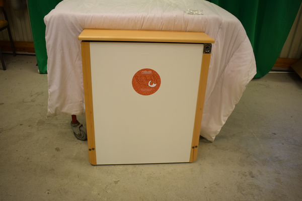 Beskrivning: Skötbord med madrass. För upphängning på väggen. I bra skick. Mått: D=20/73, B=66, H=77 cm. Artikelnummer: 7717. Lagerplats: Övervåning.