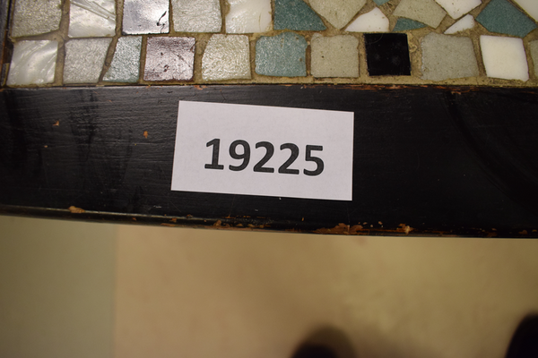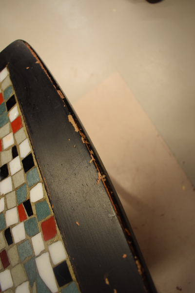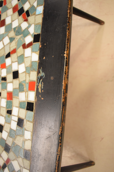 Mosaikbord i använt skick, finns repor och märken. D: 60, B: 120, H: 56.
