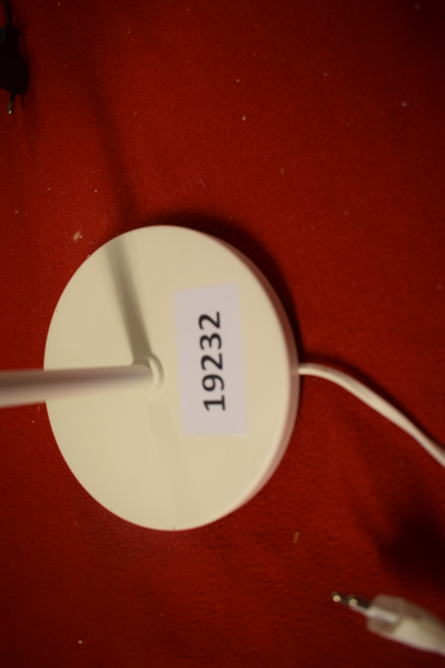 Vit lampa i metall , tung metallbas , finns ej lampskärm. B x 16Ø H x 47
