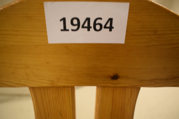 Trästol med ribbad rygg. Finns repor. D:48, B:43, H(sitt):45