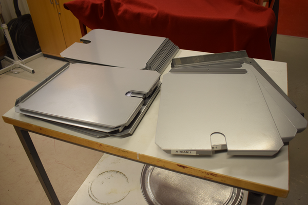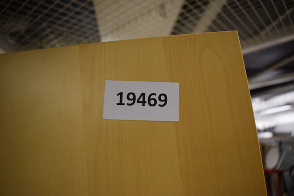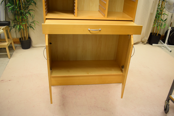 Träskåp där man kan sätta i metallskivor i hyllorna. D:39, B:96, H:194