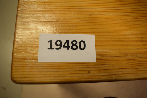 Träbord. Är i använt skick och har märken och repor. D:80, B:140, H:74.