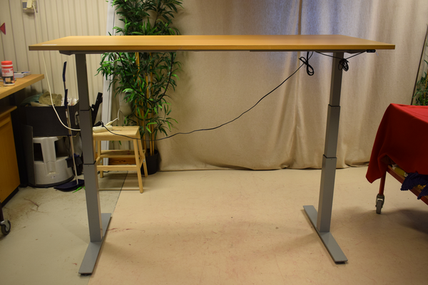 Höj- och sänkbart bord. Finns repor och märken. D:80, B:180, H:64/129.