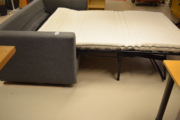 Bäddsoffa med 2 sitsar. 2 bäddsoffa. Är i grå färg. D:94, B:190, H:67.