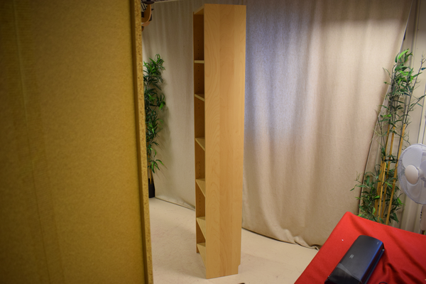Smal trähylla med 6st hyllplan. D:28, B:40, H:202.