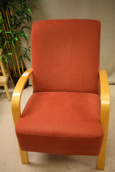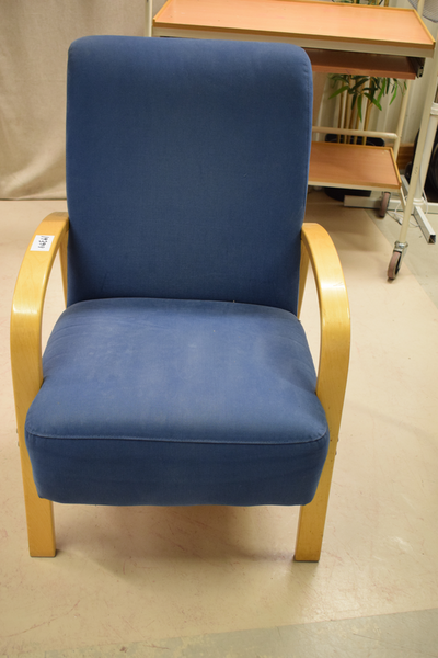 2 fåtöljer, 1 i röd färg och 1 i blå. Mjuka. D:74, B:61, H:95, H(sits)45.