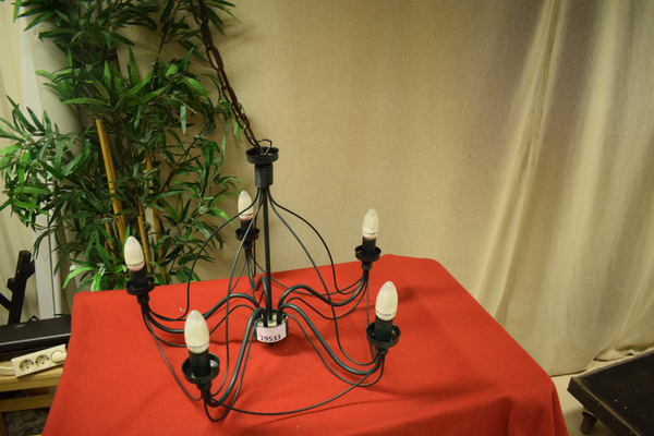 Grönsvart taklampa med 5 ljuskällor och upphängning med kedjelänkar. H:110 B:Ø64