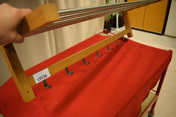 Hathylla i trä och metall med 7 krokar. H:25 B:99 D:32