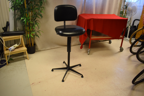 Svart kontorsstol utan hjul. Höj- och sänkbart med justerbart ryggstöd. B:44 D:45