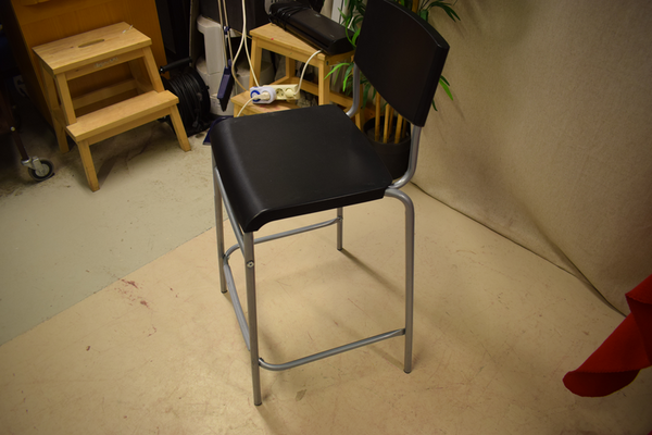 Plaststol med metallben och fotstöd. H:63 B:53 D:37