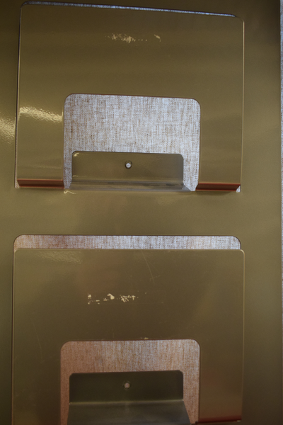 Tidningshållare i metall som skruvas fast i väggen. H:78 B:33 D:7