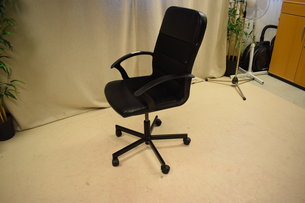 Svart kontorsstol med metallben. Höj- och sänkbar. Har lite repor och märken. D:50, B:60, H(sitt):42/51.