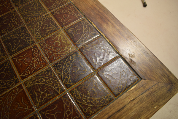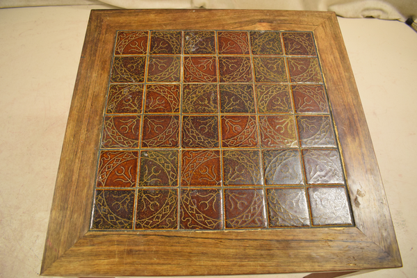 Litet sidobord med mosaik. Finns märken på bordet. D:63, B:63, H:53.