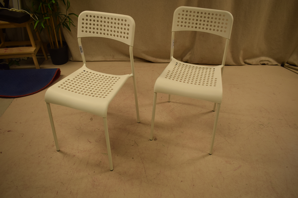 Stol i plast och metall. Ryggstöd och sits i plast. D:40, B:39, H(sitt)45, H:78.